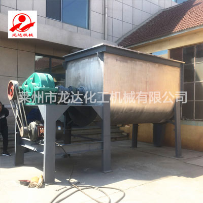臥式混合機(jī)由U形容器、螺帶攪拌葉片和傳動(dòng)部件組成;U形的長(zhǎng)體筒體結(jié)構(gòu),保證了被混合物料(粉體、半流體)在筒體內(nèi)的小阻力運(yùn)動(dòng)。正反旋轉(zhuǎn)螺條安裝于同一水平軸上,形成一個(gè)低動(dòng)力的混合環(huán)境,螺帶狀葉片一般做成雙層或三層,外層螺旋將物料從兩側(cè)向中央?yún)R集,內(nèi)層螺旋將物料從中央向兩側(cè)輸送,可使物料在流動(dòng)中形成更多的渦流,加快了混合速度,提高混合均勻度;采用皮帶輪帶動(dòng)擺線減速機(jī)驅(qū)動(dòng),相對(duì)于齒輪減速機(jī)的大扭矩,皮帶傳動(dòng)的彈性連接有在超載時(shí)保護(hù)傳動(dòng)部件的優(yōu)勢(shì)。其功能是將各種成份的粉料、液體混合均勻,具有適用性廣、混合均勻度好、物料殘留少、維護(hù)保養(yǎng)方便等特點(diǎn),是粉狀物料混合加工的理想設(shè)備。