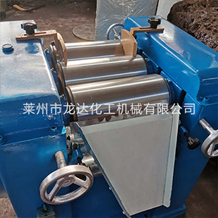 通過水平的三根輥筒的表面相互擠壓及不同速度的摩擦而達到研磨效果。三輥研磨機的輥筒材質(zhì)為冷硬合金鑄鐵離心鑄造而成。